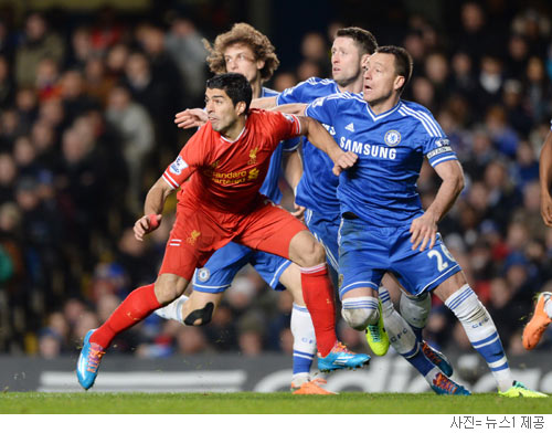 [쿠키 스포츠] 잉글랜드 프로축구 첼시의 조제 무리뉴(50·포르투갈) 감독이 리버풀의 공격수 루이스 수아레스(26·우루과이)를 비난하고 나섰다. 첼시의 공격수 사무엘 에투(32·카메룬)와 충돌로 넘어진 수아레스에게 “총을 맞은 듯한 다이빙”이라고 주장했다.