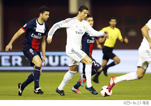 레알 마드리드는 3일 카타르 도하 칼리파 국제경기장에서 열린 파리 생제르맹과의 클럽 친선경기에서 전반 19분 헤세 로드리게스(21·스페인)의 선제 결승골을 끝까지 지켜 1대 0으로 승리했다. 이번 경기는 레알 마드리드가 지난해 파리 생제르맹에서 카를로 안첼로티(55·이탈리아) 감독을 영입하는 과정에서 포함한 계약 조건에 따라 성사됐다.