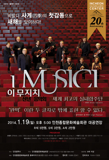 이 무지치는 2014년 신년음악회를 통해 코렐리와 비발디, 제미니아니의 곡으로 구성된 프로그램으로 관객들을 만날 예정이다.