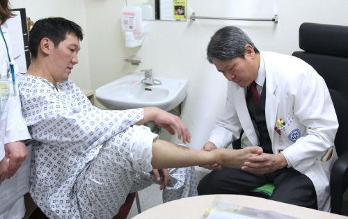 [쿠키 건강] 인제대학교 일산백병원이 교통사고로 보행이 불편한 몽골환자를 초청해 무료수술을 진행했다.