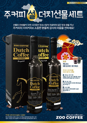 [쿠키 생활] 테마카페형 프랜차이즈 커피전문점 주커피(ZOO COFFEE)는 2014년 설을 맞아 실속과 프리미엄을 동시에 챙길 수 있는 ‘더치커피 선물세트’와 주커피 기프티콘 ‘스위트 해피뉴이어 세트’를 출시했다고 29일 밝혔다.