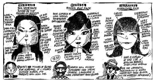 한국인 유학생에 대한 인상을 보다 자세히 설명하기도 했다. “키가 크고 눈이 작고 체격이 우람하며 모자를 쓰고 있으면 십중팔구 한국 남학생이다. 학교에서 키 큰 백인이나 흑인과 싸우고 있는 황인종이 있다면 한국인”이라고 덧붙였다. 일본 남학생에 대해서는 “좀처럼 눈에 보이지 않는다. 일본인은 자기 민족이 세계 최강이라고 생각한다”고 적었다.