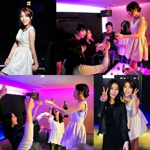 사진 속 도희는 친구들과 술을 마시며 파티를 즐기고 있다. 구두를 벗어던지고 탁자 위에도 올라갔다. 분위기를 주도하며 신이 난 모습이다. 업스타일 헤어와 하얀 민소매 원피스, 화려한 목걸이로 멋을 냈다.