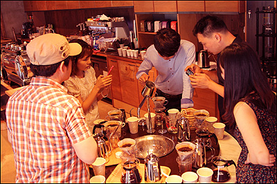 평소 커피를 좋아하지만 배울 기회가 없는 고객들을 위해 마련한 어라운지 커피 체험강좌는 ‘내게 맞는 커피 찾기’와 ‘핸드드립 클래스’ 등 매월 강좌 주제를 변경해 진행된다.