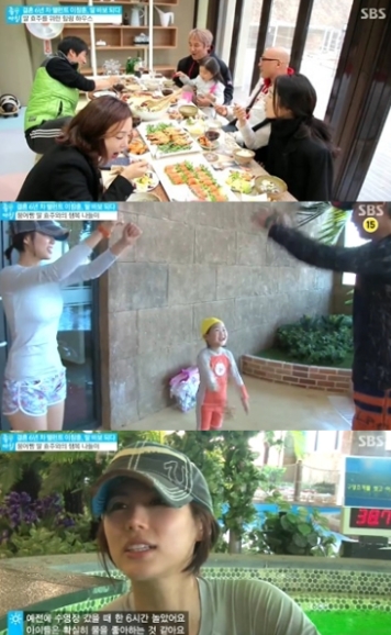 이어 가족이 함께 워터파크에 놀러간 모습도 그려졌다. 딸과 물놀이를 즐기기 위해 티셔츠와 핫팬츠 차림으로 갈아입은 아내. 글래머러스한 몸매와 각선미가 시선을 사로잡았다. 함께 물장구치며 노는 이창훈과 딸아이를 바라보던 그녀는 “나는 물이 무서워서 아예 수영을 못한다”며 미소 지었다.