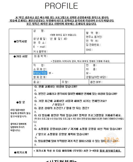 한 네티즌은 “교제하는 이성이 있는지 묻거나 타 방송 출연 경력과 쇼핑몰 운영 경력 등을 묻는 항목을 보니 그동안 짝 제작진이 얼마나 출연자 선정에 고초를 겪었는지 알 수 있다”면서 “생각보다 많은 정보를 달라고 하진 않아 놀랐다”고 썼다.