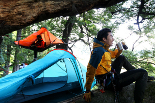 트리버스는 나무를 뜻하는 ‘트리(Tree)’와 암벽이나 산비탈을 가로질러 오르는 등반을 의미하는 ‘트래버스(Traverse)’의 합성어다. 나무에서 나무로 이동하는 것을 기본으로 하되 이동할 때에는 땅을 밟지 않고 줄을 이용해서 옮겨 다니고 잠도 나무 위에서 해결하는 아웃도어 활동이다. 사진 속 현빈은 높이 30m가 넘는 나무 수백 그루가 자라고 있는 패러다이스 숲을 배경으로 자유롭고도 도전적인 트리버스의 매력을 더욱 역동적으로 표현하고 있다.