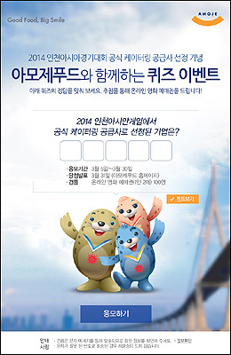 “아모제푸드 2014 인천아시아경기대회 공식 케이터링 공급사 선정 기념 퀴즈 이벤트 진행”