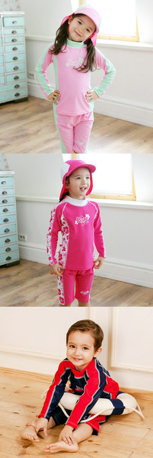 1~4세 유아들을 위한 원피스형 스타일과 4~12세 아이들이 착용 가능한 투피스형도 있다.