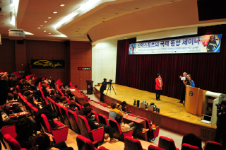 [쿠키 생활] 을지대학교 스포츠아웃도어학과에서 ‘산악스포츠의 국제 동향 세미나’를 6일 을지대학교 을지관 밀레니엄홀에서 개최했다. 세계적인 산악 스키 등반가 프랑코 존코씨와 산악인이자 이탈리아 아웃도어 브랜드 디자이너 임덕용씨의 강연으로 진행됐다. 이번 세미나는 박경이 을지대학교 스포츠아웃도어학과 교수의 초청으로 성사됐다.
