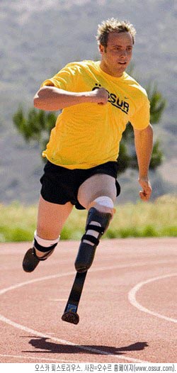 양다리 종아리뼈가 없는 기형으로 태어난 피스토리우스는 생후 11개월에 무릎 아래 다리 절단수술을 받은 뒤 탄소섬유 재질의 보철을 양다리에 끼우고 달려 ‘블레이드 러너’라는 애칭으로 불렸다.