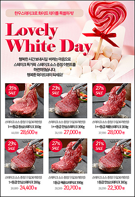 [쿠키 생활] 한우전문쇼핑몰 다하누몰(www.dahanoomall.com)이 다가오는 화이트데이를 맞아 다하누의 명품 한우 스테이크를 파격가에 제공하는 특별 이벤트를 준비했다.