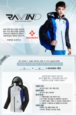 이번 ‘레윈드 재킷 빈칸 채우기’는 ‘레윈드(RAWIND)’가 어떤 단어의 조합인지를 맞추는 이벤트다. 참여방법은 오는 25일까지 이젠벅 블로그(isenbergblog.co.kr)에 방문해 이웃을 신청하고, 이벤트 게시글을 스크랩 한 뒤 URL과 정답을 댓글로 남기면 된다. 추첨을 통해 2명에 레윈드 재킷, 30명에게 스타벅스 기프티콘을 증정한다.