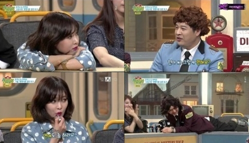 현아는 녹화가 진행되는 도중 자주 테이블에 엎드리는 모습을 보였다. 이런 행동이 계속되자 MC 신동은 “현아씨 그렇게 편해요?”라며 돌려 물었고, MC 신동엽은 테이블 위에 올라가 엎드리는 과장된 행동을 보이며 우회적으로 꼬집었다.