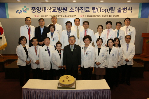 중앙대병원은 26일, 소아외과와 소아청소년과, 소아비뇨기과, 소아안과, 소아신경외과, 소아마취과, 소아재활의학과, 소아정신건강의학과 등 소아전담 진료과 전문의로 구성된 소아진료 탑팀(Top Team) 출범식을 가졌다고 밝혔다.