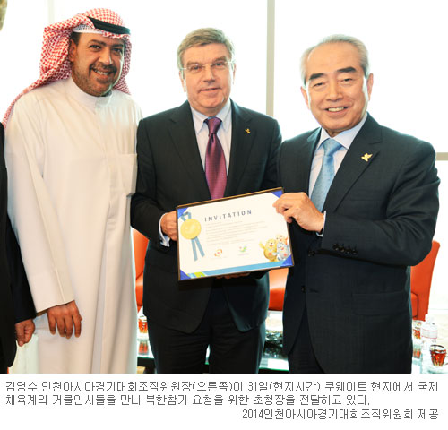 OCA 본부가 있는 쿠웨이트를 방문 중인 김영수 조직위원장은 이날 OCA 본부에서 가진 3자 회동 자리에서 최근 국제 정세가 힘든 상황이지만 스포츠 정신에 입각해 북한이 참여하는 퍼펙트 아시안게임이 될 수 있도록 노력해달라는 간곡한 부탁을 했다고 조직위원회가 전했다.