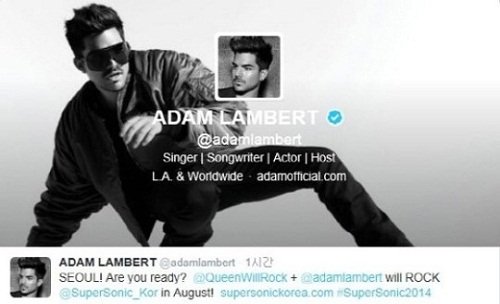 [쿠키 연예] 팝스타 아담 램버트(Adam Lambert·32)가 록밴드 퀸(Queen)과 함께 한국에서 열리는 ‘슈퍼소닉 2014’ 무대에 오른다.