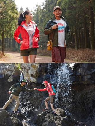 도심의 야외 활동까지 활용 가능한 아웃도어 커플 스타일이 있는가 하면, 강렬한 원색과 디자인으로 정통 아웃도어 활동에 어울리는 커플룩을 선보이는 브랜드도 있다. 북유럽 정통 아웃도어를 지향하는 ‘노스케이프’는 오렌지 톤의 남녀 방수 재킷을 봄 아웃도어 커플룩으로 선보였다. 디자인은 다르지만 비슷한 오렌지 컬러의 재킷을 매치해 산뜻한 데이트 룩을 즐길 수 있으며, 슬림한 핏과 강렬한 이미지의 배색 적용으로 세련된 아웃도어 룩을 완성할 수 있는 것이 특징이다.