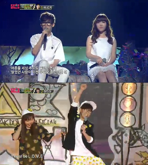 ‘200%’ 무대에서는 또 다른 모습. 그 나이대 소년 소녀의 상큼 발랄한 느낌이 물씬 풍겼다. 찬혁의 뛰어난 곡 제작 실력과 더불어 수현의 매력적인 음색이 이목을 집중시켰다.