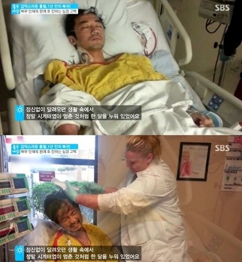 또한 “우리나라 돈으로 수술비가 4억원 이상 나왔는데, 돈 때문에 생명을 포기할 수 없는 상황이었다”며 “정신없이 달려오던 생활 속에서 시계태엽이 멈춘 것처럼 한 달을 누워 있었다”고 당시를 회상했다.