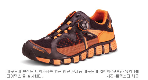 [쿠키 경제] 아웃도어 브랜드 트렉스타(대표 권동칠)는 첨단 신제품 아웃도어 워킹화 ‘코브라 워킹 140 고어텍스’(사진)를 출시했다고 14일 밝혔다.