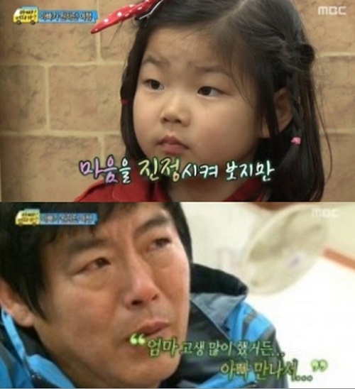 13일 MBC ‘일밤-아빠! 어디가?’ 시즌2 방송에서 성동일은 딸 빈이와 함께 11년 전 아내를 처음 만났던 돼지국밥집을 찾았다. 딸과 식사를 하던 성동일은 아내와의 추억을 회상하다 눈물을 보였다.
