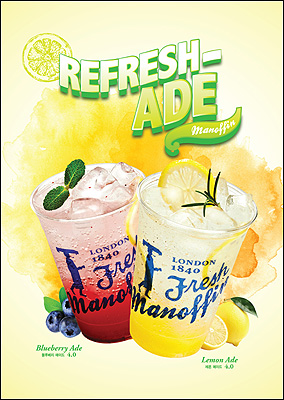이번 출시 음료는 가슴 속까지 청량감을 전달하는 에이드 종류로 ▲마노핀 익스프레스에서 판매하는 블루레몬 에이드와 유자 에이드 2종 ▲마노핀 카페에서 판매하는 레몬 에이드와 블루베리 에이드 2종으로 모두 4종이다.