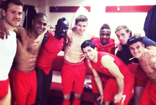 리버풀의 미드필더 마마두 사코(24·프랑스)는 14일 영국 리버풀 안필드에서 맨시티를 3대 2로 제압한 2013~2014시즌 프리미어리그 34라운드를 마친 뒤 트위터를 통해 주장 스티븐 제라드(34), 공격수 루이스 수아레스(27·우루과이) 등과 함께 라커룸에서 촬영한 사진을 공개했다. 리버풀 선수들은 마치 우승을 확정한 듯 밝게 웃는 표정으로 촬영에 응했다. 리그 폐막까지 우승 경쟁에서 가장 강력한 상대인 맨시티를 제압한 기쁨이 선수들의 표정에서 고스란히 드러났다.
