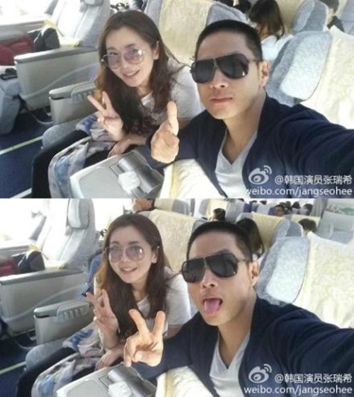 장서희는 15일 자신의 웨이보 계정에 “‘봉신영웅방2’ 촬영가는 비행기 안에서 우연히 또 만난 승준씨. 너무 반가워요”라는 내용의 글과 함께 사진을 게재했다.
