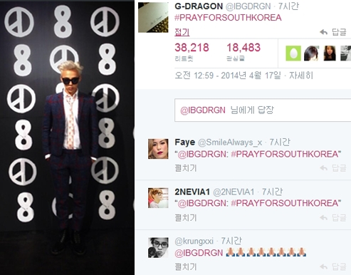[쿠키 연예] 그룹 빅뱅 멤버 지드래곤(본명 권지용·26)의 세월호 침몰 사고 언급에 해외팬들의 애도 물결이 이어지고 있다.