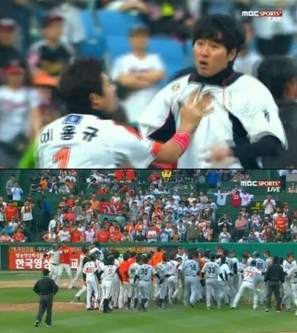 사건은 8회에 터졌다. 1사 주자 없는 상황에 타석에 들어선 정근우는 2구째에 또 다시 몸에 공을 맞았다. 정근우가 화를 참지 못하고 보호대를 풀며 마운드로 뛰쳐나가자 양 팀 선수 모두 일제히 그라운드 위로 올라오며 벤치클리어링이 벌어졌다.