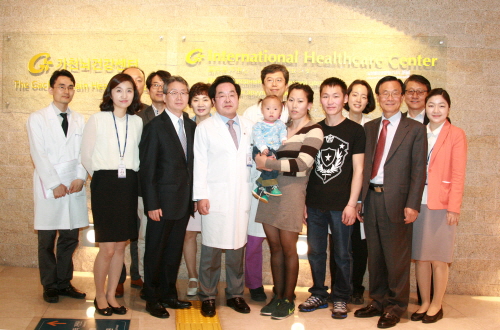 [쿠키 건강] 가천대 길병원은 지난 23일 국제의료센터 접견실에서 몽골에서 온 심장병 어린이 바트어르시흐(2세)군의 완치를 기념하는 자리를 가졌다.