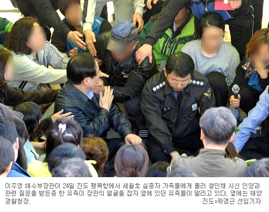 이 장관 역시 “대통령께서 죽을 각오로 하라고 엄명을 내렸다”며 “제가 죽을 죄인이다. 다 책임을 지겠다”고 말했지만 오히려 가족들의 거센 반발을 샀다.
