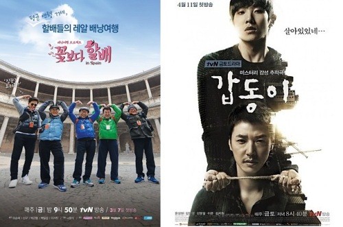 [쿠키 연예] 세월호 참사 애도의 뜻으로 결방됐던 tvN ‘꽃보다 할배-시즌2’와 ‘갑동이’가 25일부터 정상 방송된다.