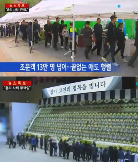 국화꽃도 모두 동이 났다. 경기도 합동대책본부는 당초 10만여 송이의 국화꽃을 준비했지만 오전 11시20분쯤 모두 헌화됐다. 더 이상 국화꽃을 구할 수 없어 검은색 근조리본을 제단에 올리는 것으로 대신하고 있다.