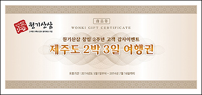 [쿠키 생활] 장뇌산삼 대표브랜드 원기산삼이 창립 3주년을 맞아 제주도 2박3일 무료관광이벤트를 실시한다고 2일 밝혔다.