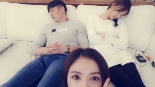 지난 4일 황영롱 디자이너가 자신의 트위터를 통해 “잠에 취하신 손호영 그리고 천이슬씨”라는 짧은 글과 함께 게재한 사진이다.