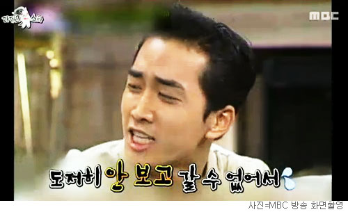 진행자들은 “송승헌의 정도가 지나칠 만큼 잘생긴 얼굴과 정도가 넘칠 만큼 못하는 연기로 두 번 놀랐다”는 개그맨 신동엽의 발언을 대신 전했다. 신동엽은 과거 송승헌의 데뷔작인 ‘남자 셋 여자 셋’에 함께 출연했다.