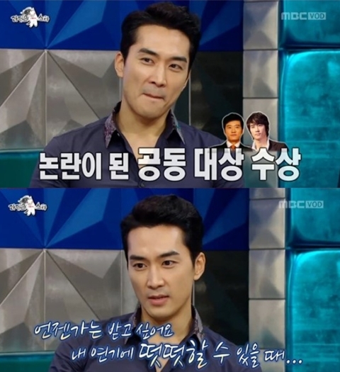 이날 MC 김구라가 2008년 MBC 연기대상에서 ‘베토벤 바이러스’의 김명민과 함께 ‘에덴의 동쪽’의 송승헌이 연기대상을 공동수상한 사실을 언급하며 “당시 마음고생 좀 했다고 하더라”라고 말문을 열었다.