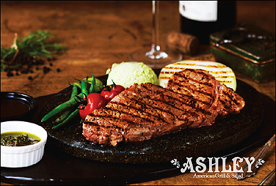 애슐리의 스톤 스테이크는 뜨거운 스톤 위에서 직접 스테이크를 구워먹는 방식으로 좀더 특별한 식사를 완성시켜줄 메뉴로 꾸준히 사랑 받아왔다. 2인이 함께 즐길 수 있는 빅사이즈의 ‘스톤 빅 등심 스테이크’, 부드러운 살치살이 일품인 ‘롱아일랜드 스톤 스테이크’, 채끝살의 부드러움과 쫄깃함을 느낄 수 있는 ‘뉴욕 스톤 스테이크’등 3종류가 준비돼 있다.