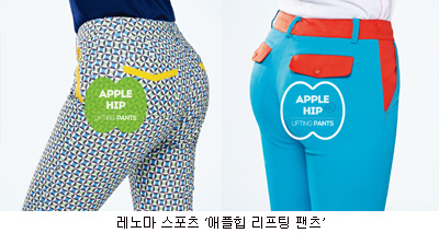 레노마 스포츠에서 출시한 ‘애플힙 리프팅 팬츠’는 사과처럼 동그랗고 탄력 있는 엉덩이로 보일 수 있도록 하체를 잡아주는 것이 특징이다.