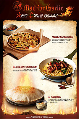 매드 포 갈릭은 ‘화신 (火辛)’이라는 프로모션명에 걸맞게 맵거나 뜨거운 맛이 돋보이는 피자 및 파스타 메뉴를 새롭게 선보인다. 신 메뉴는 ▲매드 포 갈릭만의 특제 살사 소스와 바삭한 나쵸칩이 어우러진 멕시칸 스타일 피자인 ‘매드 멕시 나쵸 피자(The Mad Mexi Nacho Pizza)’ ▲마늘 가득한 알리오 올리오를 매콤하게 구운 닭다리살과 함께 즐길 수 있는 ‘앵그리 그릴드 치킨 파스타(Angry Grilled Chicken Pasta)’ ▲여러 가지 치즈의 풍미와 매드 포 갈릭 화이트 갈릭소스를 함께 즐길 수 있는 이색적인 화산 피자인 ‘볼케이노 피자 (Volcano Pizza)’ 등 총 3가지다.