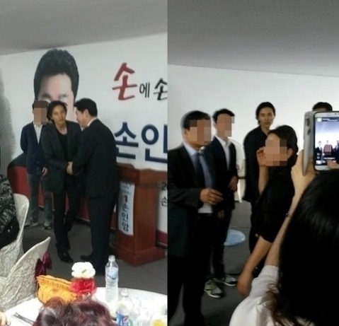 사진에는 손 후보 사무실에서 포착된 원빈의 모습이 담겼다. 검은 슈트 차림으로 등장한 원빈은 손 후보와 악수를 나누는 등 친분을 드러냈다. 네티즌들은 이들의 만남이 어떻게 성사됐는지 궁금해 했다.
