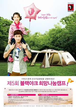 이번 행사에는 온 가족이 즐길 수 있는 다양한 프로그램과 초청가수 공연 등이 마련됐으며 참가 신청 및 발표는 블랙야크 홈페이지(www.blackyak.com)를 통해 확인할 수 있다. 특히, 1팀 당 2만원의 참가비는 전액 당일 현장에서 공익단체에 기부금으로 전달될 예정이다.