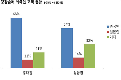 외식문화기업 강강술래는 홍대점·청담점 등 평소 외국인 관광객이 많이 찾는 매장의 매출을 분석한 결과, 이달 1일부터 26일까지 중국인 고객의 방문 비율이 전월에 비해 평균 37% 증가했다.