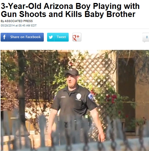 29일(현지시간) 미국 현지 다수 언론에 따르면 지난 27일 애리조나주 페이슨의 한 아파트에서 이웃집에 놀러간 A군(3)이 집주인 소유의 권총을 손에 쥐고 놀다 1년 6개월 된 남동생 머리를 향해 방아쇠를 당겼다.