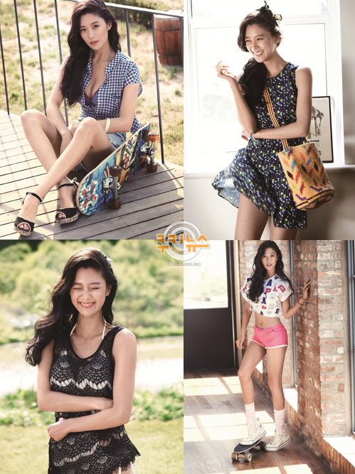 원피스는 여성스럽게, 숏팬츠는 발랄한 느낌으로 소화했다. 하얀 수영복 위에 블랙 레이스 탑을 매치해 몸매를 드러내기도 했다.
