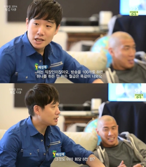 배 아나운서는 지난 3월 바쁜 일정을 쪼개 브라질 아마존으로 출국, 촬영에 임했다. 당시 배 아나운서는 “군대가 인생에서 제일 힘들었는데 비교도 안 된다”며 “죽을 수도 있겠다고 생각했다”고 토로했다. 같은 촬영에도 연예인은 고액의 출연료를 받는 반면 아나운서는 그와 비교도 안 되는 적은 액수를 받는 것으로 알려졌다.