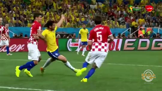 당시 방송 영상을 보면 크로아티아의 수비수 데얀 로브렌이 프레드를 잡아끌었다고는 보기 힘든데요. 오히려 프레드가 로브렌을 등지고 있다가 혼자 과장된 몸짓을 하며 뒤로 자빠지는 것처럼 보입니다.