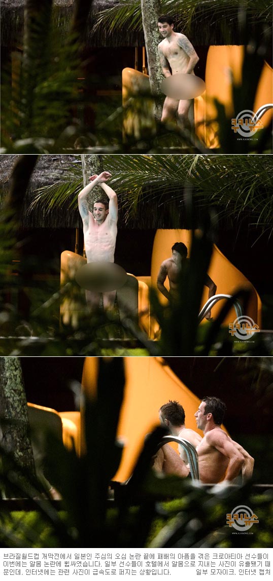 브라질월드컵 개막전에서 일본인 주심의 오심 논란 끝에 패배의 아픔을 겪은 크로아티아 선수들이 이번에는 알몸 논란에 휩싸였습니다. 일부 선수들이 호텔에서 알몸으로 지내는 사진이 유출됐기 때문인데, 인터넷에는 관련 사진이 급속도로 퍼지는 상황입니다.